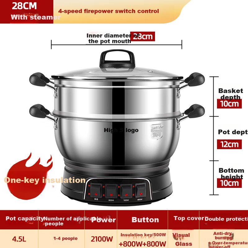 Olla eléctrica CHIGO 12.5L acero inoxidable doble capa con vaporizador$4,249
