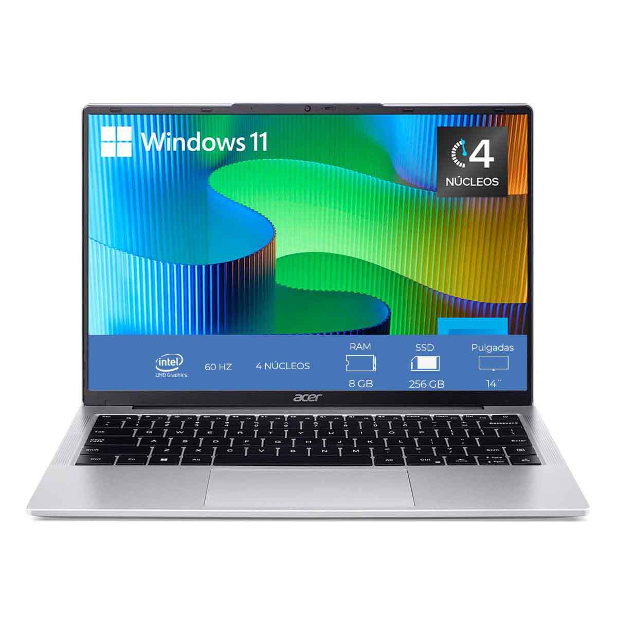 Laptop Acer Aspire Lite 14 Pulgadas Intel N100 8GB RAM 256GB SSD AL14-31P-C0S2 Plata