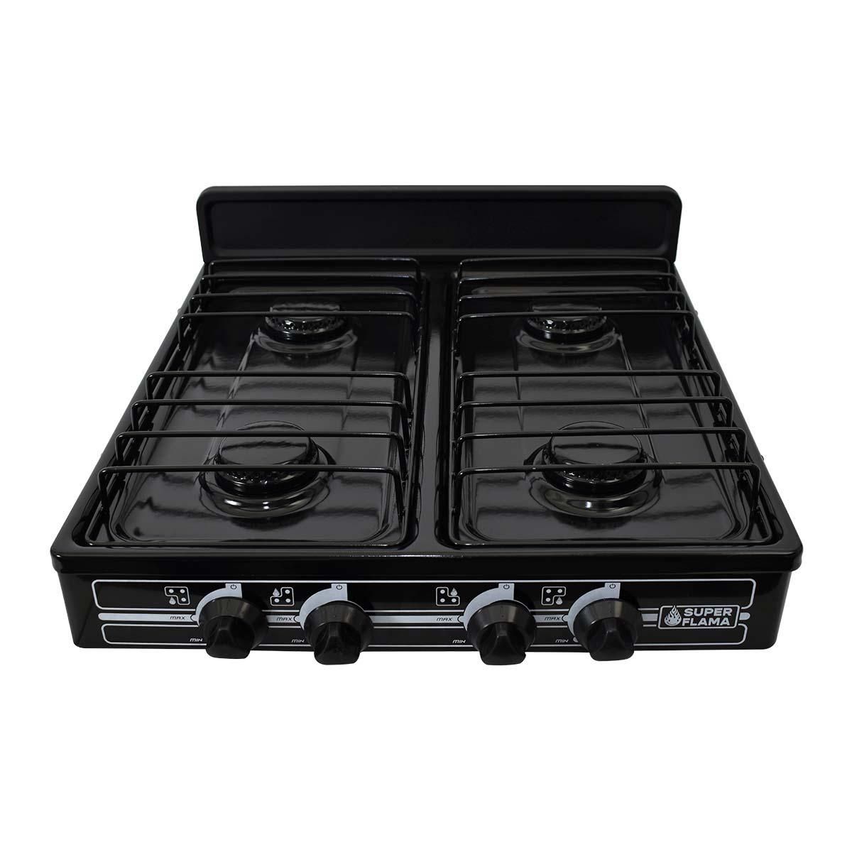 Parrilla Super Flama Gas de 4 Quemadores Negro 4Q-N
