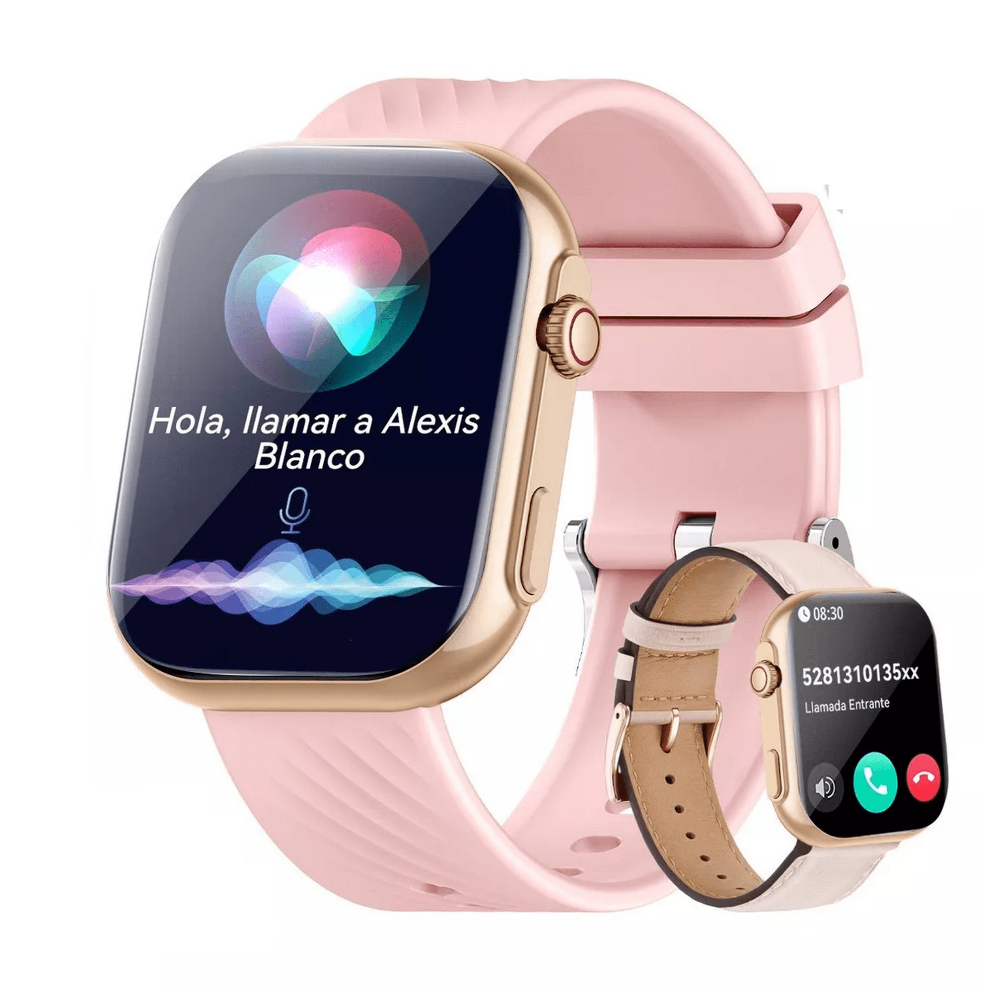 Reloj smartwatch 2.01'' reloj inteligente bluetooth llamada rosa