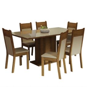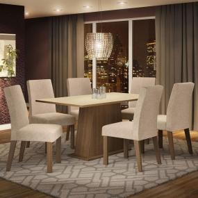 MESA 6 SILLAS VIDRIO CREMA/BEIGE MADESA